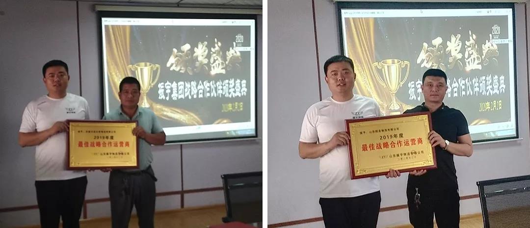 隨著公司的不斷發(fā)展壯大,振宇物流與各供應(yīng)商建立起長久、緊密的伙伴關(guān)系,由振宇物流總經(jīng)理張憲振為各大合作供應(yīng)商頒發(fā)“最佳戰(zhàn)略合作供應(yīng)商”獎項(xiàng),并與最佳戰(zhàn)略合作供應(yīng)商就2020年年度進(jìn)行簽約。