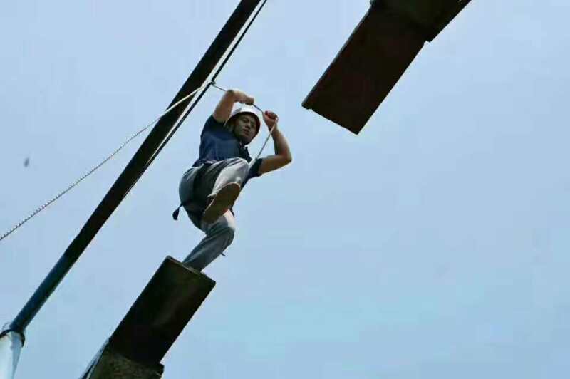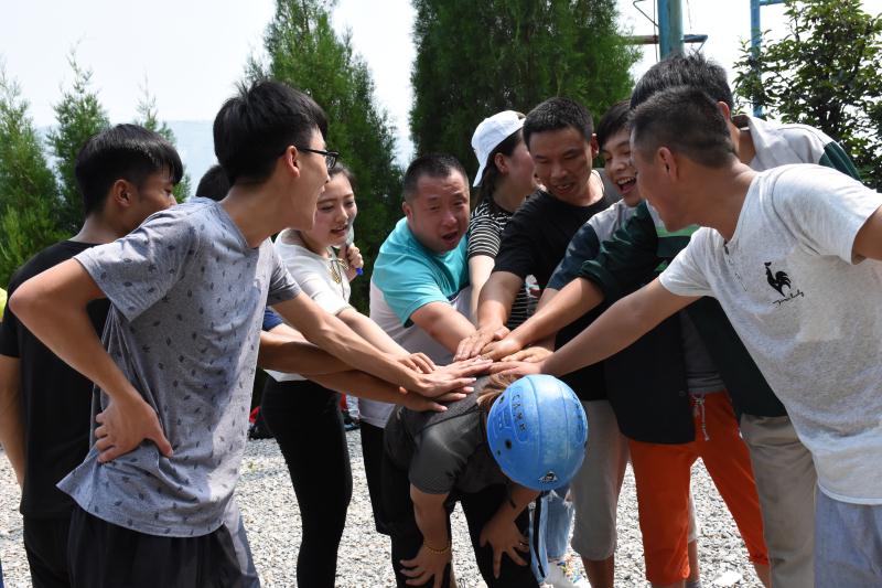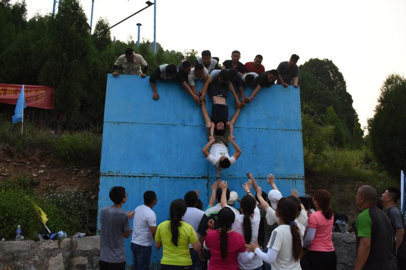 在訓(xùn)練過程中,全體員工被分為三支隊(duì)伍并展開了激烈的競爭,8米的高空斷橋,真正的個(gè)人挑戰(zhàn),敢于挑戰(zhàn)便是對(duì)自己的一大突破,只有勇 于不斷的去突破自己,才能在工作、生活中有所成長,有所改變;所有學(xué)員站在1.5高的背摔臺(tái)上背對(duì)著大家,身體筆直的倒下,由下面的伙 伴將其接住。面對(duì)這個(gè)挑戰(zhàn),敢不敢將自己的后背交給隊(duì)友?敢不敢充分的相信隊(duì)友?如何去建立信任……通過訓(xùn)練活動(dòng)讓員工們體驗(yàn)到解 決問題的方法,員工們之間面對(duì)同樣一個(gè)問題所表現(xiàn)出來的態(tài)度,如何達(dá)到共識(shí),并進(jìn)行配合共同解決。最終大家齊心協(xié)力在規(guī)定時(shí)間內(nèi)完 成了超音速、背摔、斷橋、有軌電車、求生墻等眾多項(xiàng)目。