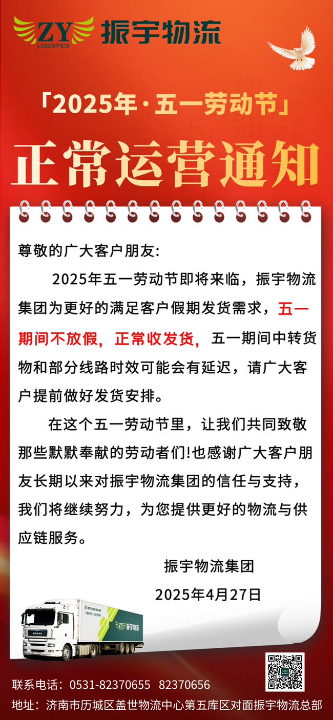 振宇物流集團(tuán)丨五一期間正常運(yùn)營(yíng)通知