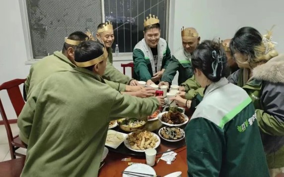 壽星們圍坐,燭光逐一亮起時,有人閉目凝神,有人望向身側的同事,輕聲許下心愿。從許愿時的真誠,到吹蠟燭時的歡呼,再到飯桌上的暢聊,這場生日會傳遞的不僅是溫暖,更是振宇物流“以人為本”的核心價值觀。它讓員工感受到企業(yè)不只是工作的平臺,更是并肩前行的“家人”,成長不只是個人的奮斗,更有團隊的托舉。