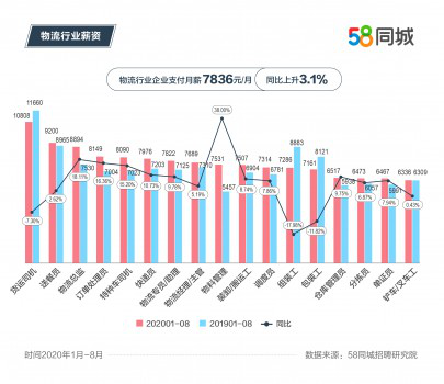 薪酬水平也是物流行業(yè)就業(yè)的重要指標(biāo),58同城招聘研究院數(shù)據(jù)顯示,今年1-8月,交通運(yùn)輸、倉(cāng)儲(chǔ)和郵政業(yè)支付月薪達(dá)到7836元,同比上升3.1%。典型職位中,貨運(yùn)司機(jī)支付月薪第一,達(dá)到10808元;送餐員支付月薪排名第二,為9200元;物料管理支付月薪同比上升最快,增幅38%,月薪達(dá)到7531元??梢?jiàn),物流行業(yè)崗位薪資與崗位技術(shù)含量、市場(chǎng)需求、勞動(dòng)強(qiáng)度密切相關(guān),技術(shù)含量高、市場(chǎng)需求大、勞動(dòng)強(qiáng)度大的崗位收入更高。