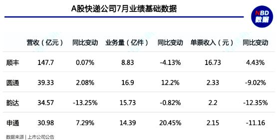 雖然大部分公司在7月實現(xiàn)了業(yè)績增長,但是快遞行業(yè)的單票價格進一步下跌也引發(fā)業(yè)內(nèi)擔憂。