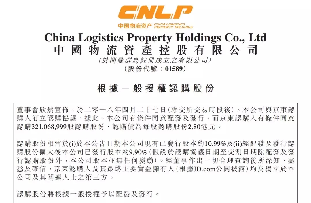 濟(jì)南物流:中國(guó)物流資產(chǎn)配發(fā)新股獲京東認(rèn)購(gòu)