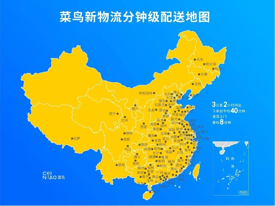 據(jù)介紹,618前夕,菜鳥門店發(fā)貨再下70城,目前已覆蓋全國30省100多個城市。作為新物流的首個618,盒馬30分鐘達、天貓超市1小時達、菜鳥“門店發(fā)貨”2小時達都是大促的標(biāo)準(zhǔn)服務(wù),分鐘級配送已經(jīng)涵蓋生鮮、美妝、母嬰、快消、服飾、醫(yī)藥等多個品類,并從一二線城市向三四線城市拓展。